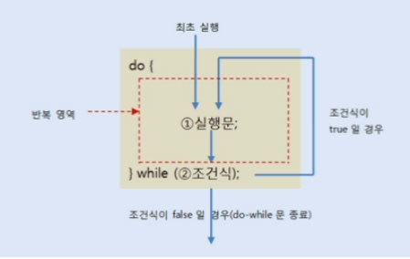 다만, 무조건 중괄호 {} 블럭을 한번 실행하고, 조건을 검사하여 반복을 결정합니다.