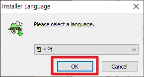 위에서 설치 파일을 실행해주시면 다음과 같은 화면에서 언어를 선택할 수 있습니다. 여기에서 원하시는 언어를 선택하시고, [OK]버튼을 클릭해 주시면 됩니다.