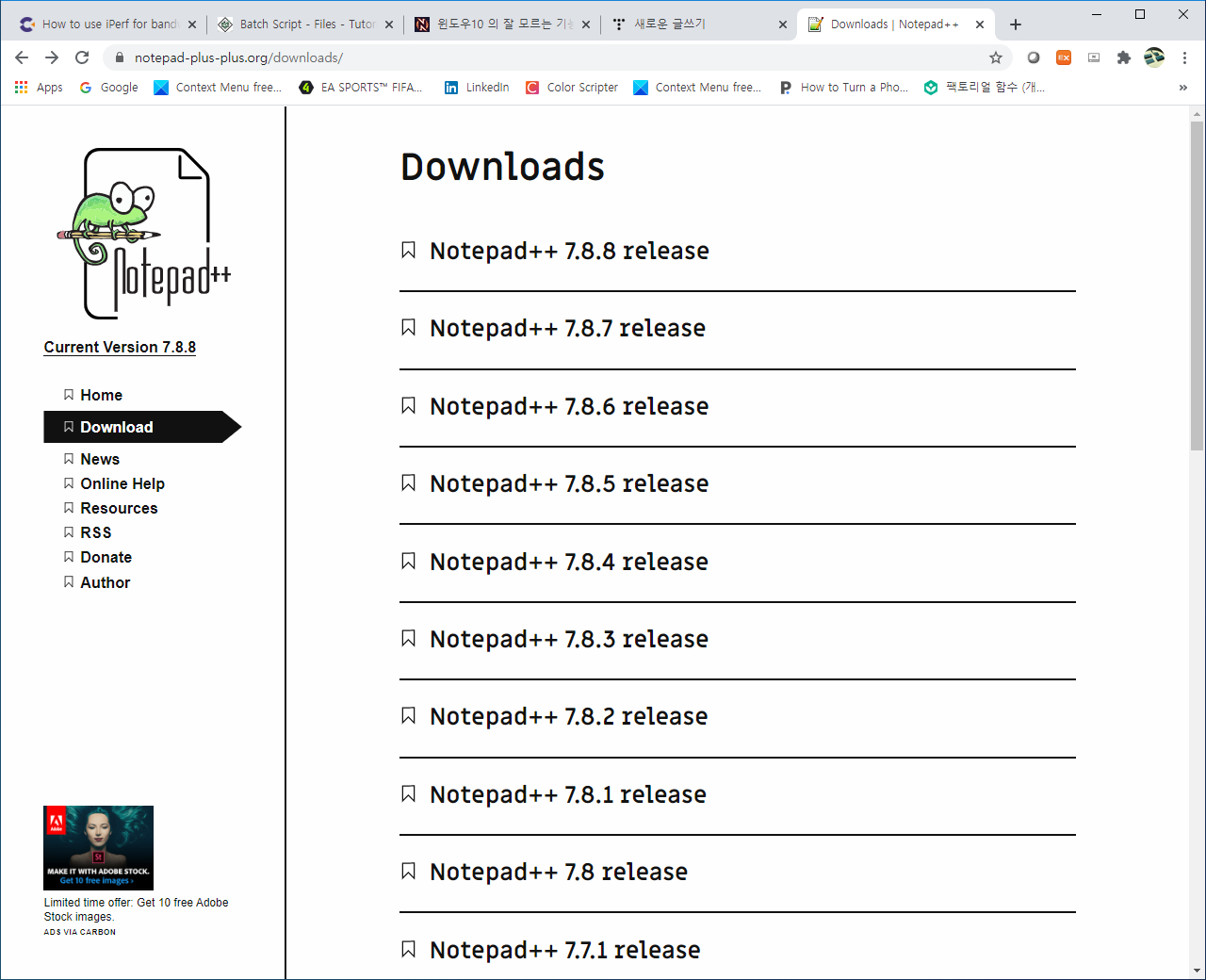 노트패드(NotePad++) 다운로드 페이지