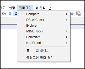 Notepad++에는 다양한 플러그인 설치가 가능합니다. 물론 너무 많기 때문에 사람들이 추천하는 것만 설치해도 사용하는데 많은 도움이 됩니다. 플러그인을 설치하기 위해서는 아래 그림처럼 '플러그인 관리' 메뉴를 클릭합니다.