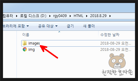먼저 늘 하던대로 이미지 폴더를 html이 위치한 루트 폴더에 생성합니다. 저는 image 라고 이름을 적었습니다.