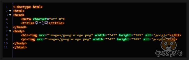 그리고 이미지를 총 두번 띄울껀데 차이점을 잘 보세요. 중요한 부분입니다. 하나는 <h1> 태그로 감쌌고, 다른 하나는 <p>태그로 감싸주었습니다. 어떤 차이가 있을지 두고봅시다.
